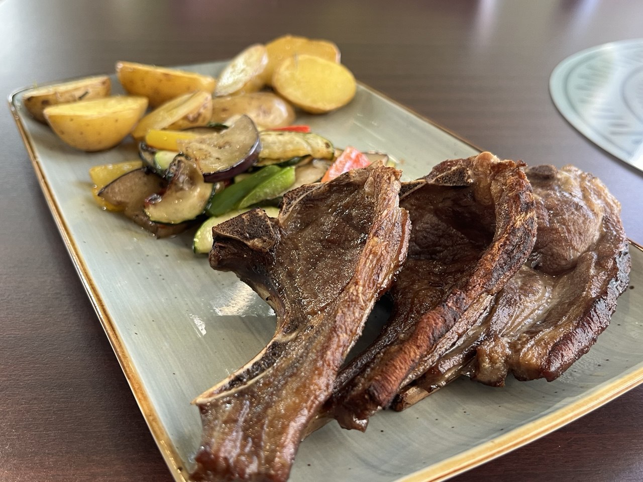3 Stück gegrillte Lammkoteletts / Kräuterbutter / Grillgemüse / Rosmarinkartoffeln